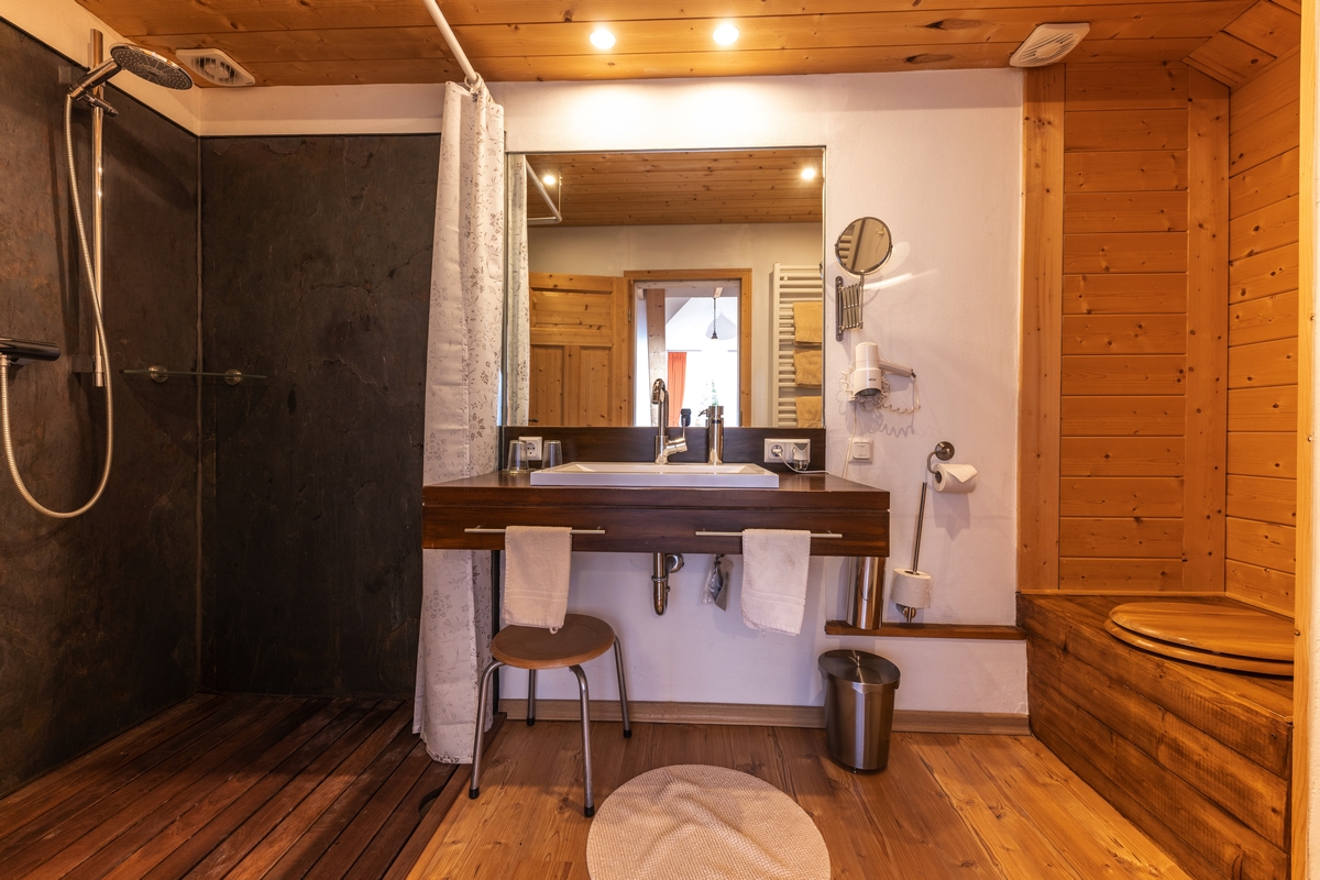 Freuen Sie sich auf ein Urlaubserlebnis der besonderen Art. Die urige Einrichtung mit viel Naturholz verleiht diesem Appartement einen besonderen Charme. Darüber hinaus bietet unsere "Schlafhöhle" für Kinder und Junggebliebene mehreren besonders gemütliche Schlafplätze. Das Appartement erstreckt sich über mehrere Ebenen die über Treppen erreichbar sind. Es verfügt über eine voll ausgestattete Küche mit Bartresen. Außerdem sind sowohl im Wohn- als auch im Schlafbereich je ein TV mit SAT-Anlage & Sky vorhanden.