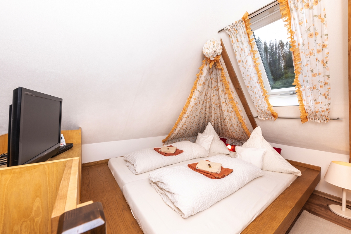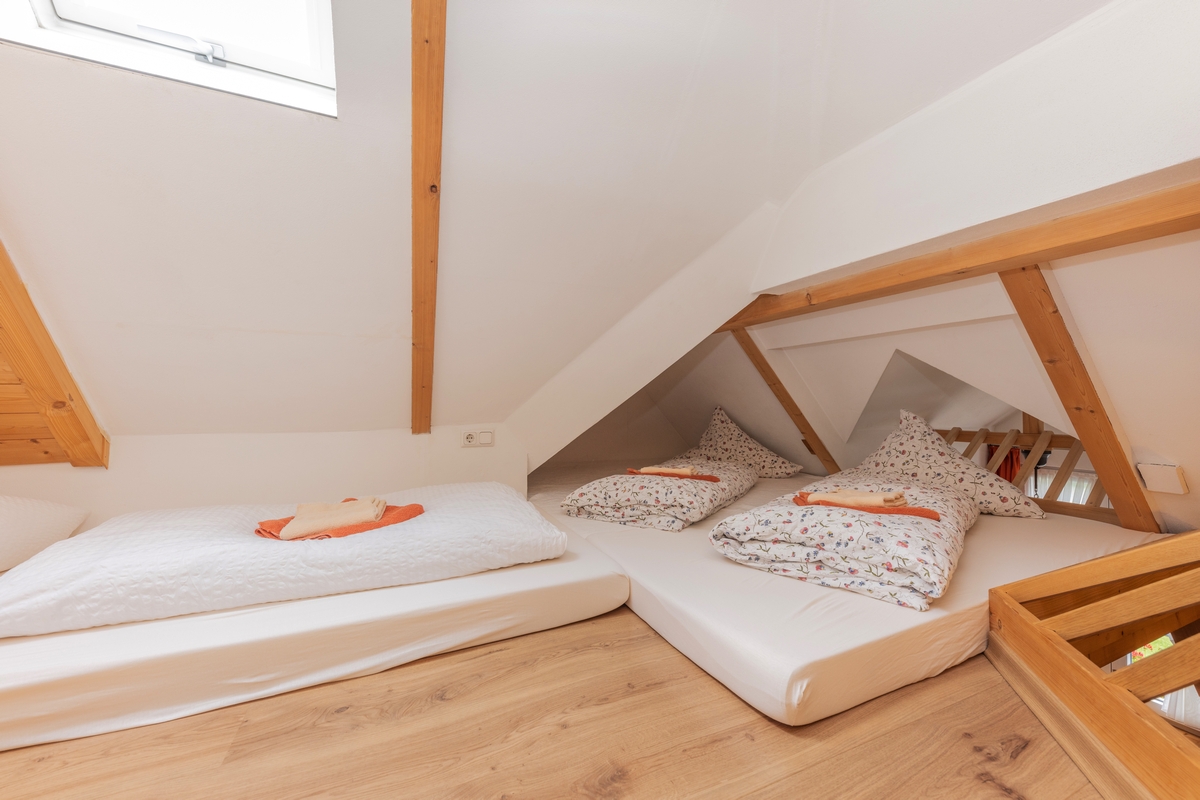 Freuen Sie sich auf ein Urlaubserlebnis der besonderen Art. Die urige Einrichtung mit viel Naturholz verleiht diesem Appartement einen besonderen Charme. Darüber hinaus bietet unsere "Schlafhöhle" für Kinder und Junggebliebene mehreren besonders gemütliche Schlafplätze. Das Appartement erstreckt sich über mehrere Ebenen die über Treppen erreichbar sind. Es verfügt über eine voll ausgestattete Küche mit Bartresen. Außerdem sind sowohl im Wohn- als auch im Schlafbereich je ein TV mit SAT-Anlage & Sky vorhanden.