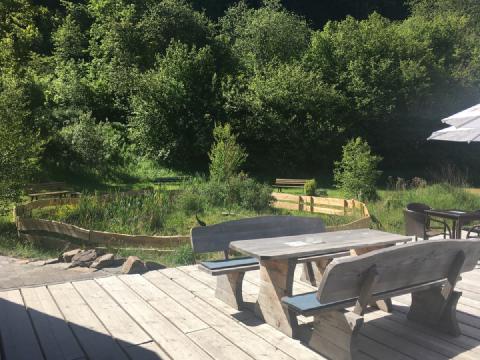 Ein Grillplatz mit Feuerstelle lädt zu gemütlichen Abenden unter freiem Himmel ein. Für die kleinen Gäste steht ein Spielplatz bereit, und im angeschlossenen Biergarten / Cafébereich können Sie entspannt beisammensitzen. (Beides sind öffentliche Bereiche, die auch von externen Gästen genutzt werden können.) Zusätzlich stehen – je nach Verfügbarkeit – ein lichtdurchfluteter Wintergarten sowie eine rustikale Hütte mit Ofen und eigener Zapfanlage zur Verfügung – ideal für gesellige Runden.